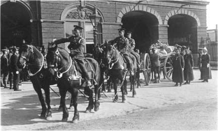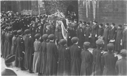 Edith Cavell’s coffin arrives at Norwich Cathedral for burial.